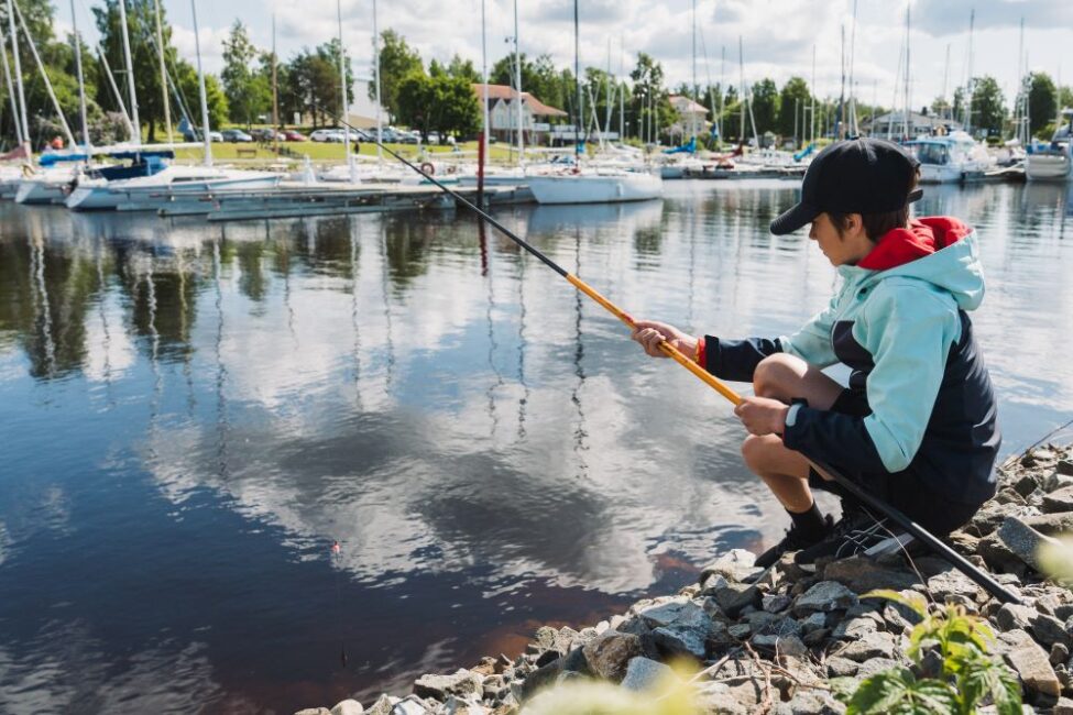 Hippo-Onkikoulu perheen pienimmille. Paikan päällä on mahdollista lainata onkivälineitä.