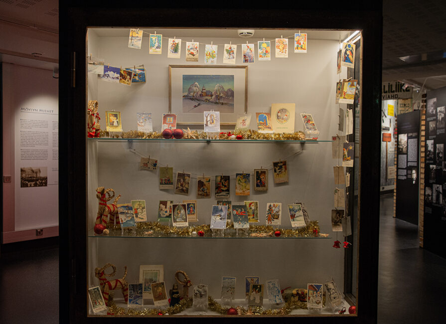 Joulukortteja eri vuosikymmeniltä historiallisessa museossa