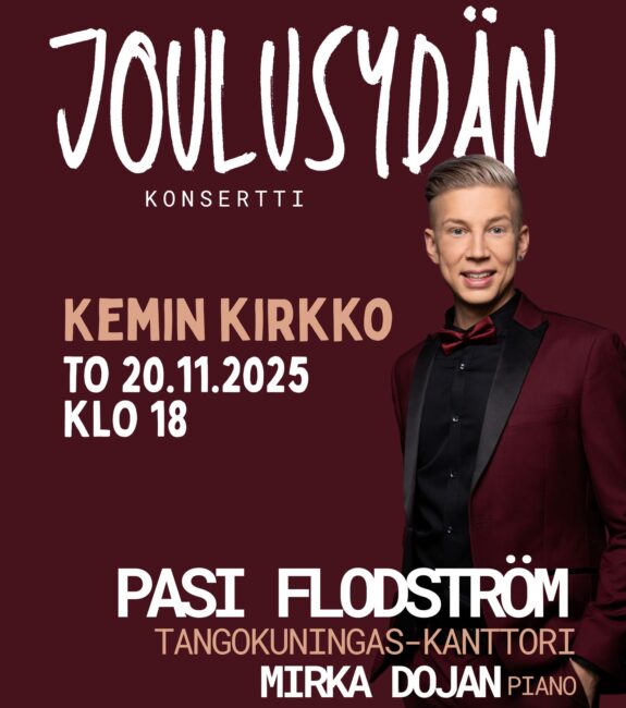 Tule virittäytymään joulun tunnelmaan Joulusydän-konsertissa tangokuningas-kanttori Pasi Flodströmin ja pianisti Mirka Dojanin seurassa Kemin kirkossa 20.11.2025 kello 18!