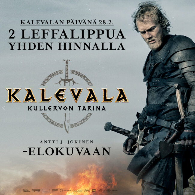 Kalevalan päivän kunniaksi tarjoamme etuna kaksi leffalippua yhden hinnalla Antti J. Jokisen Kalevala: Kullervon tarina -suurelokuvaan lauantain 28.2.2026 näytöksiin.