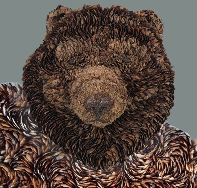 Forest inhabitants on tehty pelkästään kuusen ja lehtikuusen kävyistä, joiden sidosaineena on käytetty metyyliselluloosasta ja kuusenkäpyjauheesta tehtyä massaa. Tällä menetelmällä voidaan luoda monenlaisia pintoja, tekstuureja sekä vaikkapa pieniä hahmoja. Kaikki tarvittavat materiaalit sisältyvät kurssin hintaan.