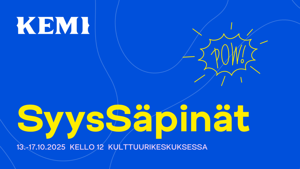 Vapaa-aikapalvelut järjestää SyysSäpinät-toimintatuokion Kulttuurikeskuksessa maanantaista perjantaihin kello 12-13. Tuokion jälkeen tarjolla pieni välipala.