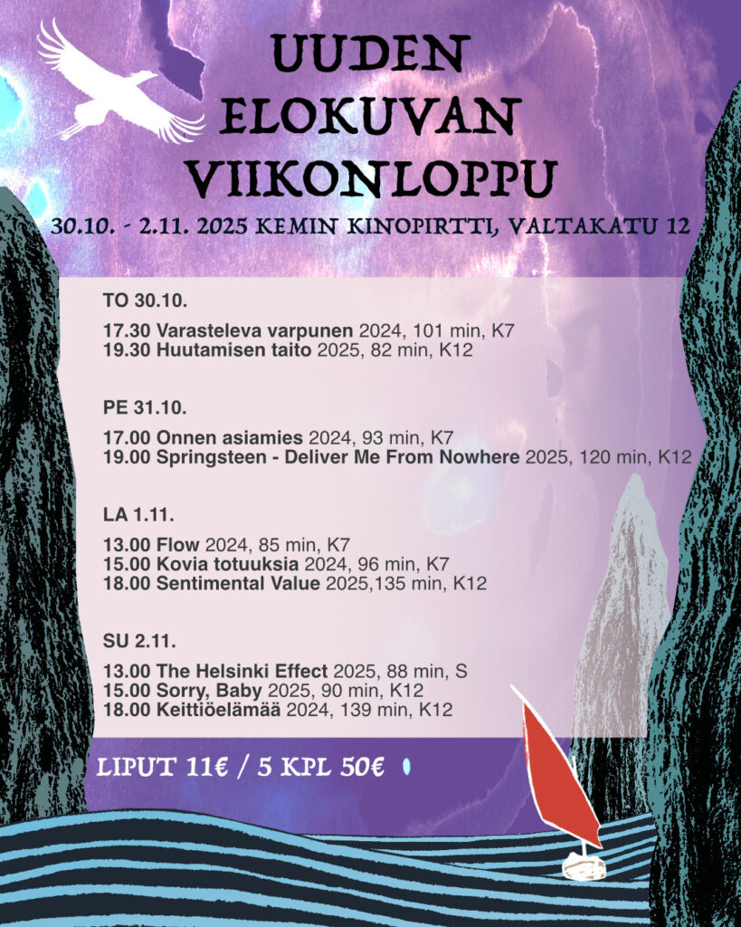 Torstaista sunnuntaihin kestävässä Uuden elokuvan viikonloppu -elokuvafestivaalissa 30.10.–2.11.2025 esitetään 10 palkittua uutta laatuelokuvaa eri puolilta maailmaa. Liput 11 euroa tai 5 lippua 50 euroa.