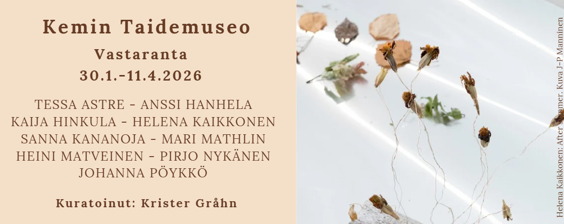 Oulun Taiteilijaseuran ryhmänäyttely Kemin taidemuseossa rakentuu yhdeksän taiteilijan teosten kohtaamisesta – vastaan tulemisesta ja vastaan ottamisesta. Näyttelyn taiteilijat ovat Tessa Astre, Anssi Hanhela, Kaija Hinkula, Helena Kaikkonen, Sanna Kananoja, Mari Mathlin, Heini Matveinen, Pirjo Nykänen ja Johanna Pöykkö. Kokonaisuuden on kuratoinut Krister Gråhn.