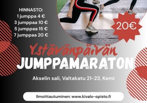 Tämä ystävänpäivä vietetään liikkeessä – ota ystävä mukaan ja tulkaa yhdessä hikoilemaan, nauramaan ja nauttimaan hyvästä fiiliksestä Kivalo-opiston jumppamaratoniin 14.2.2026 kello 10-13!