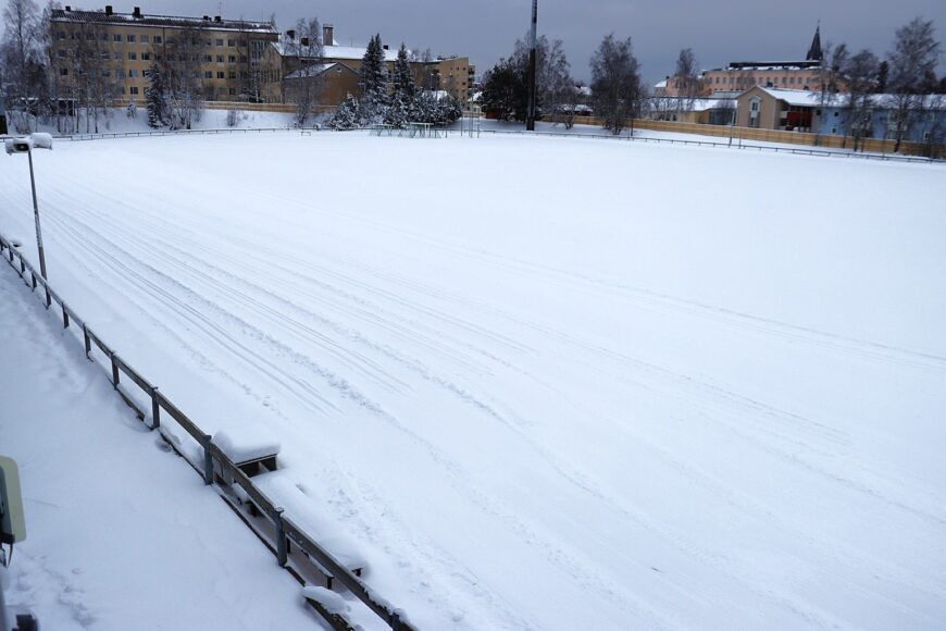 Sauvosaaren yleisurheilukentällä pääsee hiihtämään