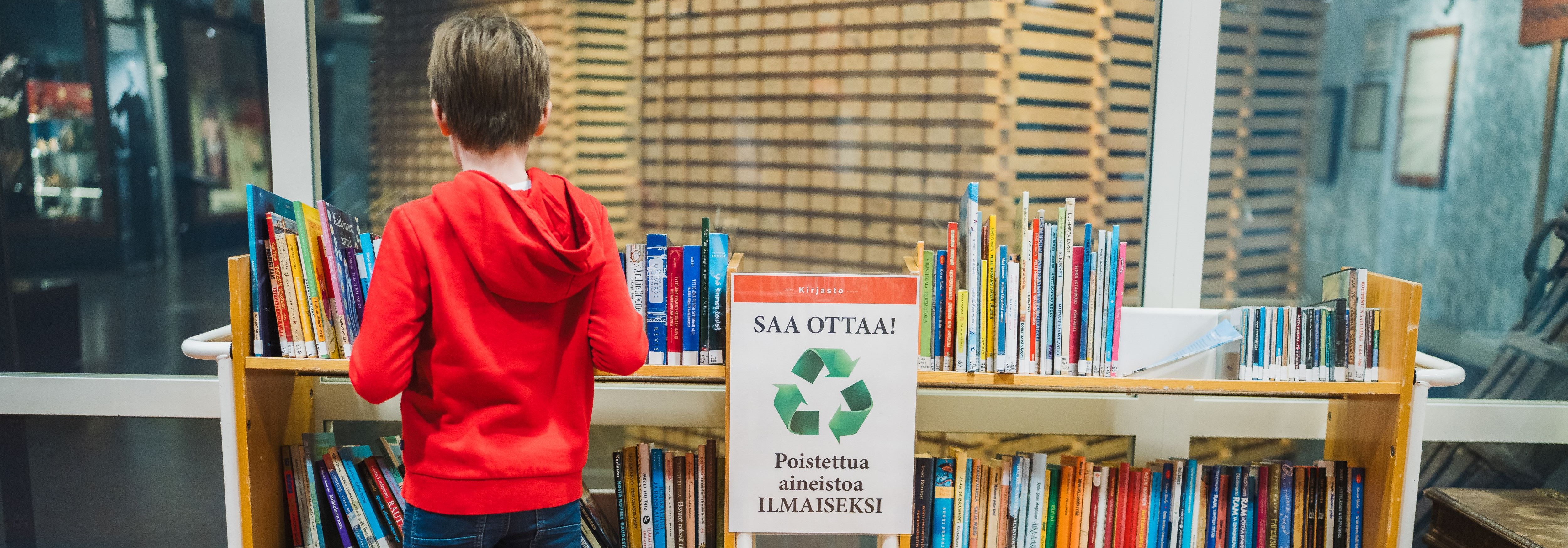 Kulttuurikeskuksen aulassa, Taidemuseon infon vieressä on kirjaston poistokirjapiste. Kirjat ovat saatavissa pientä maksua vastaan tai maksutta.