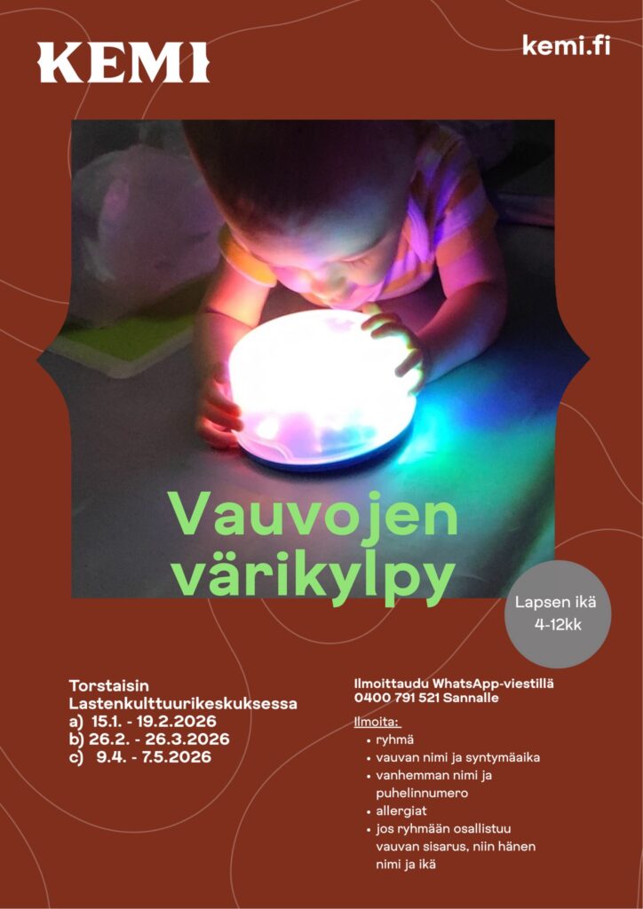 Vauvojen värikylpy-ryhmät on suunnattu perheille, joissa on 4-12kk ikäinen lapsi.